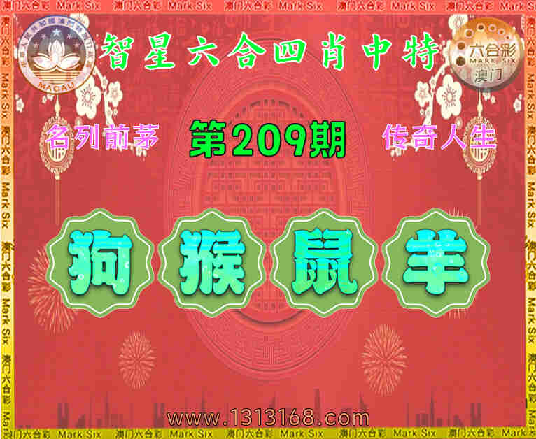 209期:『智星六合』 🥓四肖中特🥓【狗.猴.鼠.羊】开:00准