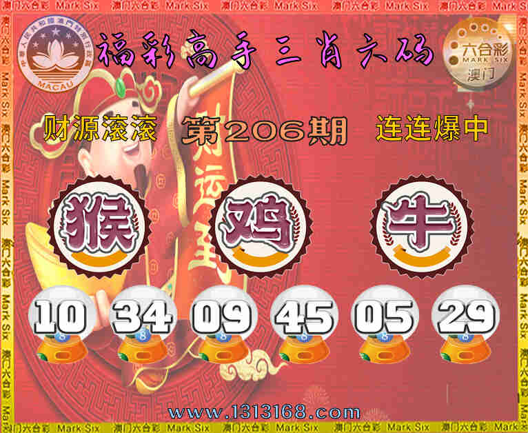 206期:《福彩高手》 🧧三肖六码🧧【鸡牛】开:猴10