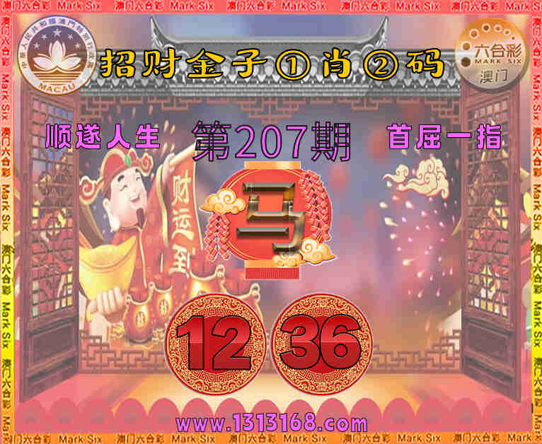 207期:【招财金子】 🎖️①肖②码🎖️【马】【12.36】开:00准