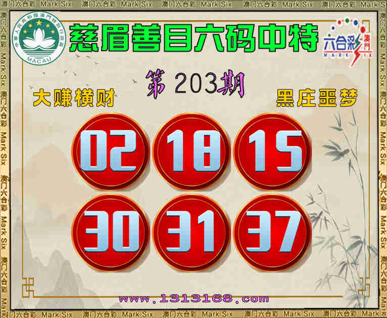 203期:《慈眉善目》 🎯六码中特🎯【02.18.15.30.31.37】开:18