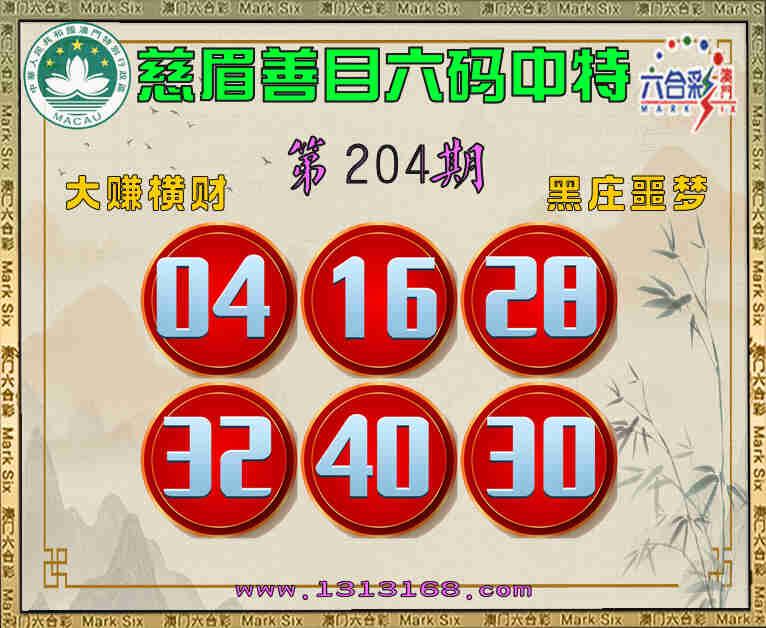 204期:《慈眉善目》 🎯六码中特🎯【04.16.28.32.40.30】开:30