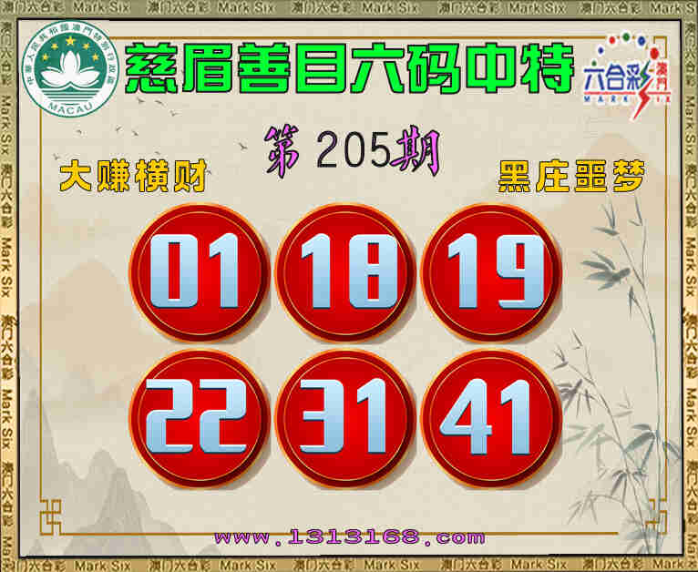 205期:《慈眉善目》 🎯六码中特🎯【01.18.19.22.31.41】开:01