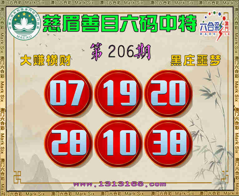 206期:《慈眉善目》 🎯六码中特🎯【07.19.20.28.10.38】开:10
