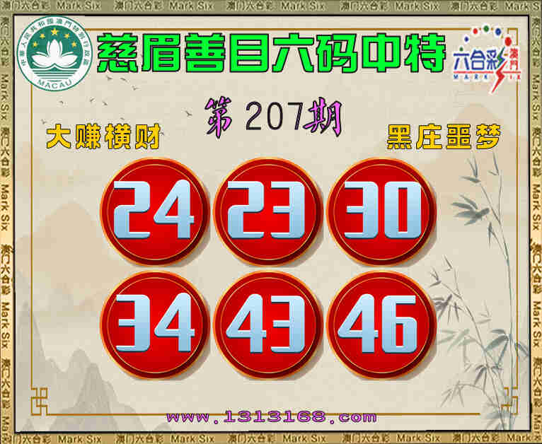 207期:《慈眉善目》 🎯六码中特🎯【24.23.30.34.43.46】开:24