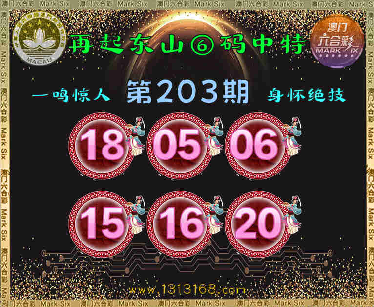 203期:【再起东山】 🎯⑥码中特🎯【18.05.06.15.16.20】开:18