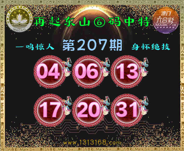 207期:【再起东山】 🎯⑥码中特🎯【04.06.13.17.20.31】开:00准