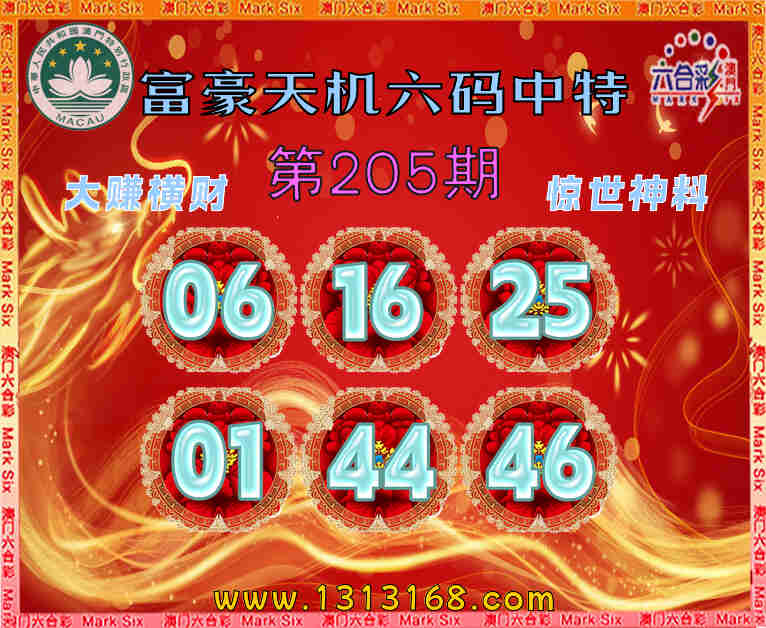 205期:『富豪天机』 🌷六码中特🌷【06.16.25.01.44.46】开:01