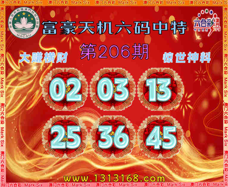 206期:『富豪天机』 🌷六码中特🌷【02.03.13.25.36.45】开:00准