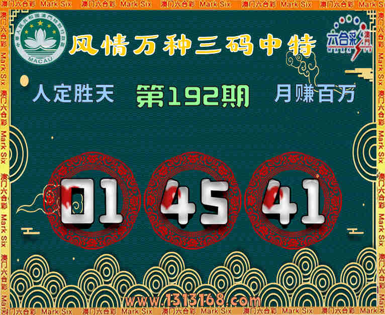 192期:『风情万种』 👈三码中特👈【01.45.41】开:45