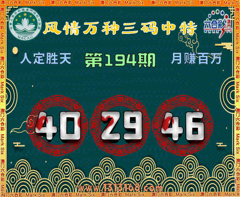 194期:『风情万种』 👈三码中特👈【40.29.46】开:29