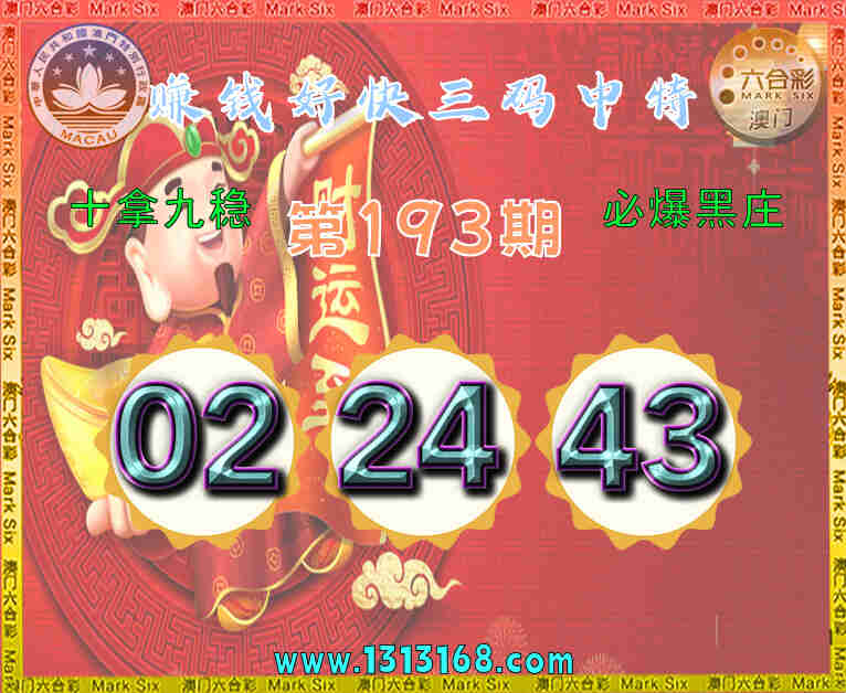 193期:『赚钱好快』 🎈三码中特🎈【02.24.43】开:24