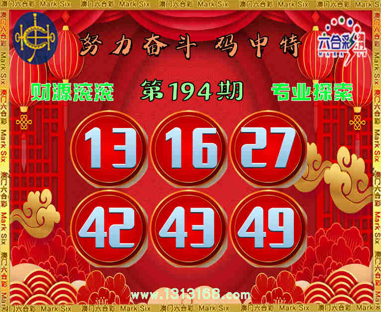 194期:『努力奋斗』 🥽⑥码中特🥽【13.16.27.42.43.49】开:00准