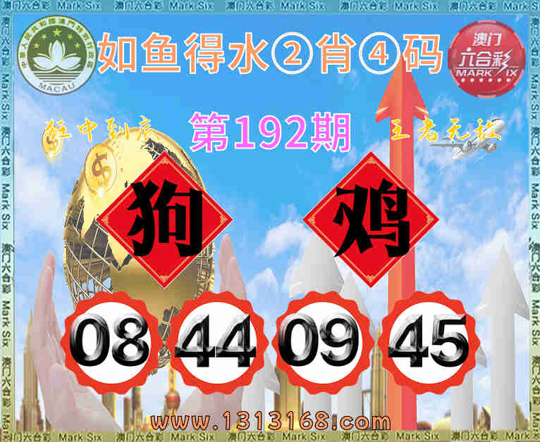 192期: 🩴『如鱼得水』 🩴②肖④码🩴【狗】【08.44.09.45】开:鸡45