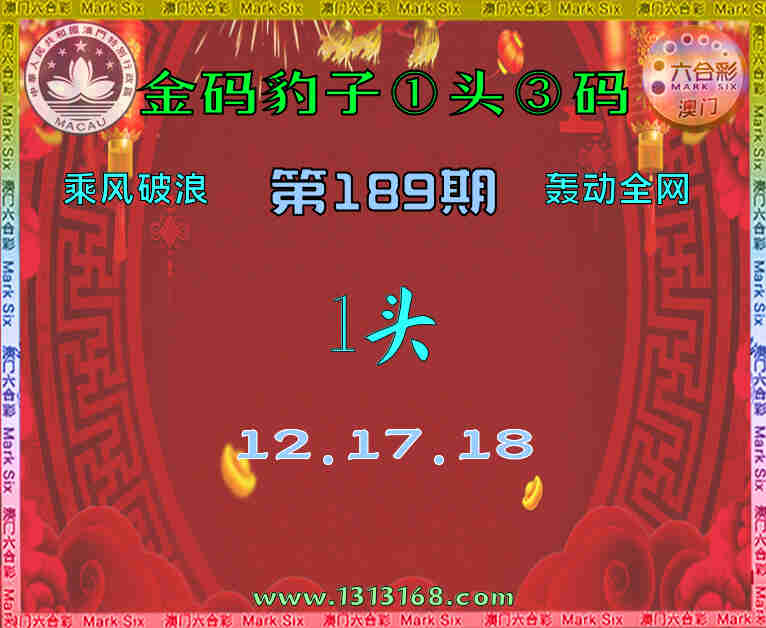 189期: 🏇『金码豹子』 🏇①头③码🏇【1头主:12.17.18】开:牛17