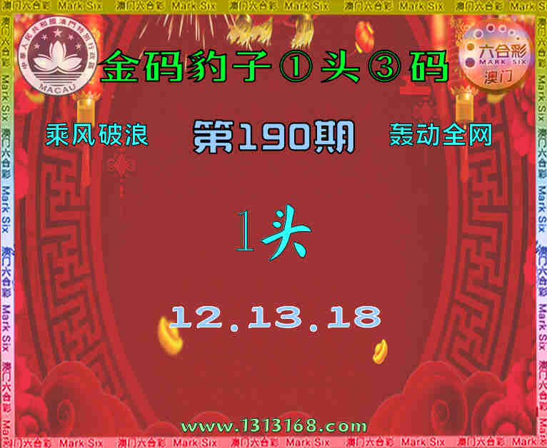 190期: 🏇『金码豹子』 🏇①头③码🏇【1头主:12.13.18】开:鼠18