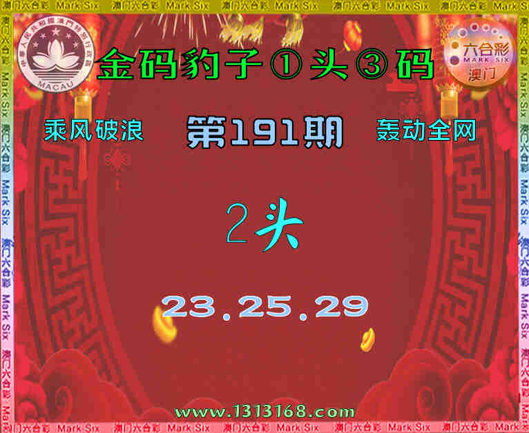 191期: 🏇『金码豹子』 🏇①头③码🏇【2头主:23.25.29】开:牛29