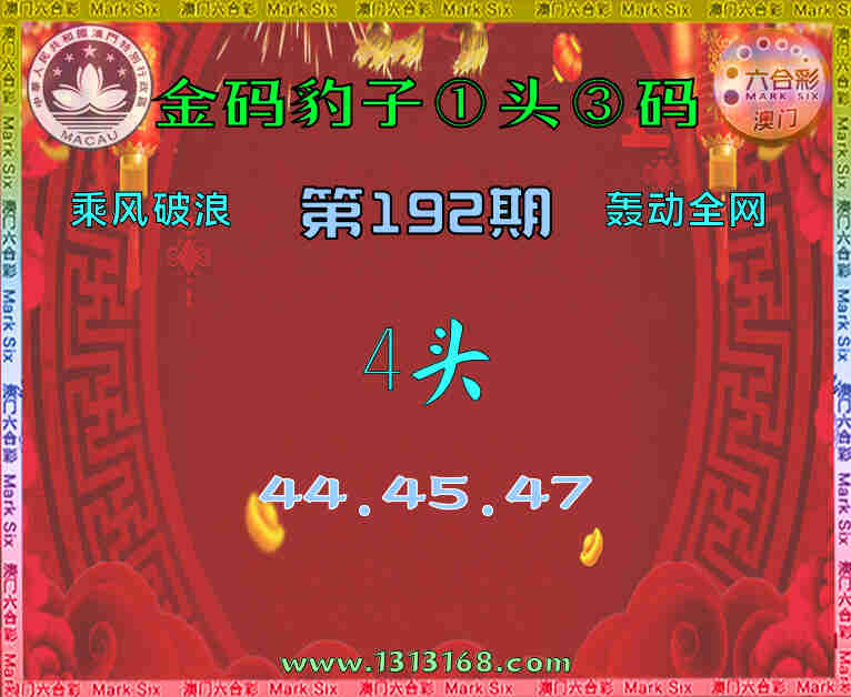 192期: 🏇『金码豹子』 🏇①头③码🏇【4头主:44.45.47】开:鸡45