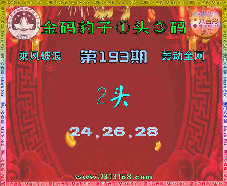 193期: 🏇『金码豹子』 🏇①头③码🏇【2头主:24.26.28】开:马24
