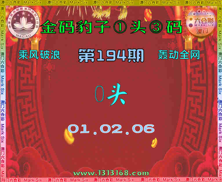 194期: 🏇『金码豹子』 🏇①头③码🏇【0头主:01.02.06】开:00准