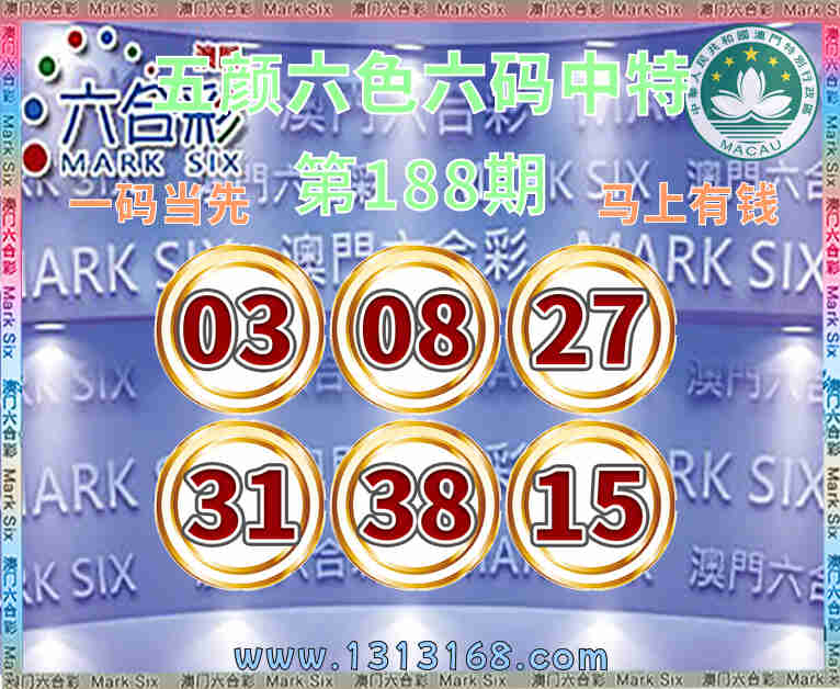 188期:『五颜六色』 😜六码中特😜【03.08.27.31.38.15】开:15