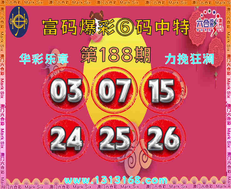 188期:【富码爆彩】 🚵‍♀️⑥码中特🚵‍♀️【03.07.15.24.25.26】开:15