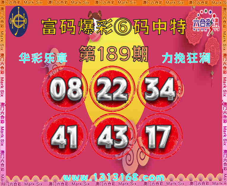 189期:【富码爆彩】 🚵‍♀️⑥码中特🚵‍♀️【08.22.34.41.43.17】开:17