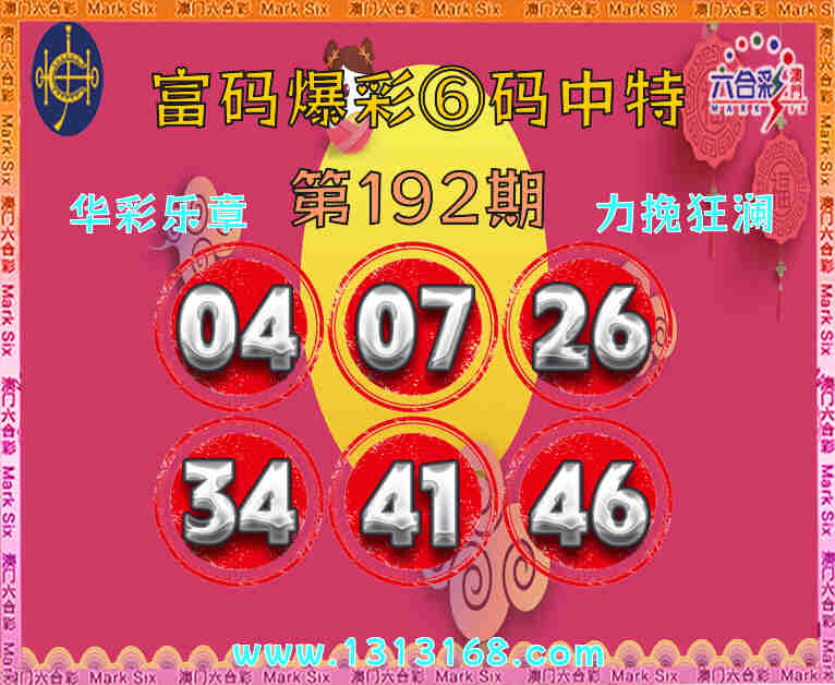 192期:【富码爆彩】 🚵‍♀️⑥码中特🚵‍♀️【04.07.26.34.41.46】开:00准