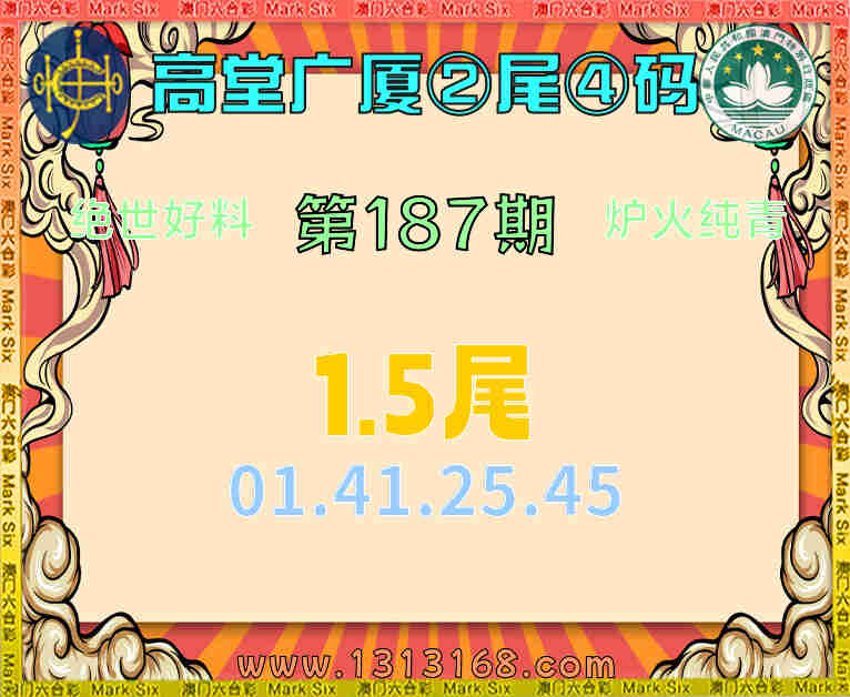 187期:《高堂广厦》  ♣️②尾④码 ♣️【15尾主:01.41.25.45】开:45