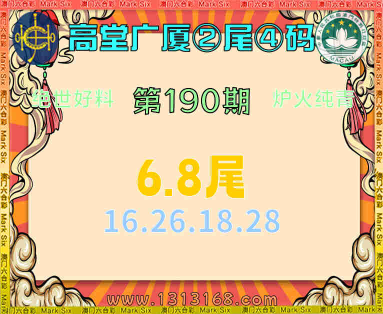 190期:《高堂广厦》  ♣️②尾④码 ♣️【68尾主:16.26.18.28】开:18