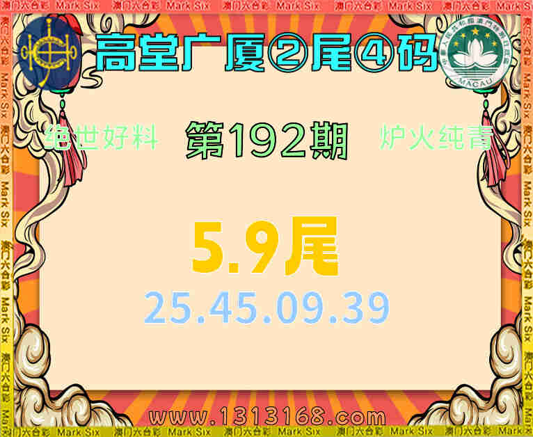192期:《高堂广厦》  ♣️②尾④码 ♣️【59尾主:25.45.09.39】开:00准