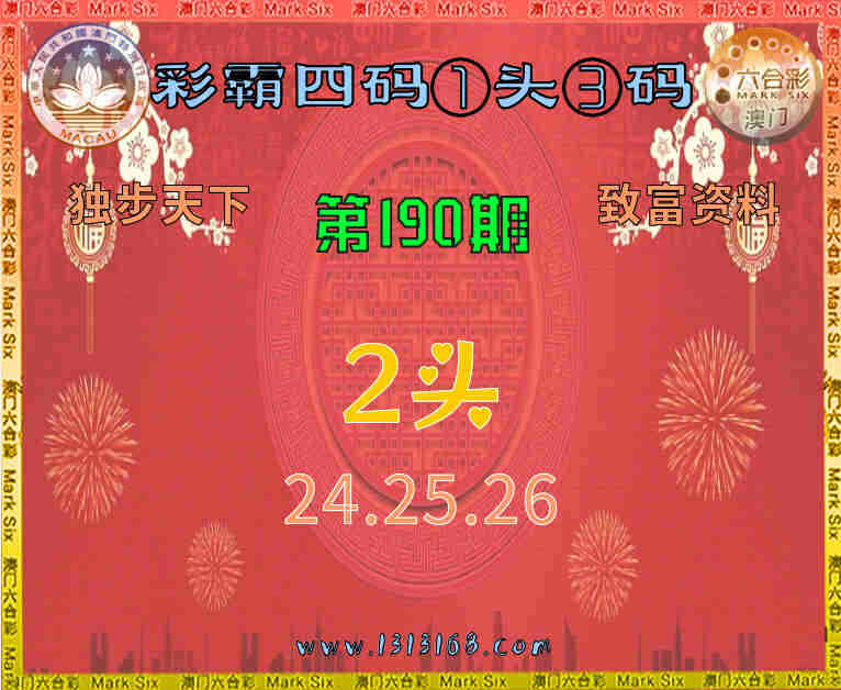 190期:【彩霸四码】 🏅①头③码🏅【2头主:24.25.26】开:00准