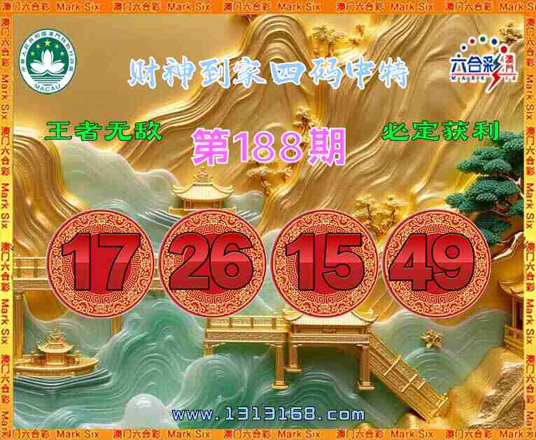 188期:【财神到家】 🚵‍♀️四码中特🚵‍♀️【17.26.15.49】开:15