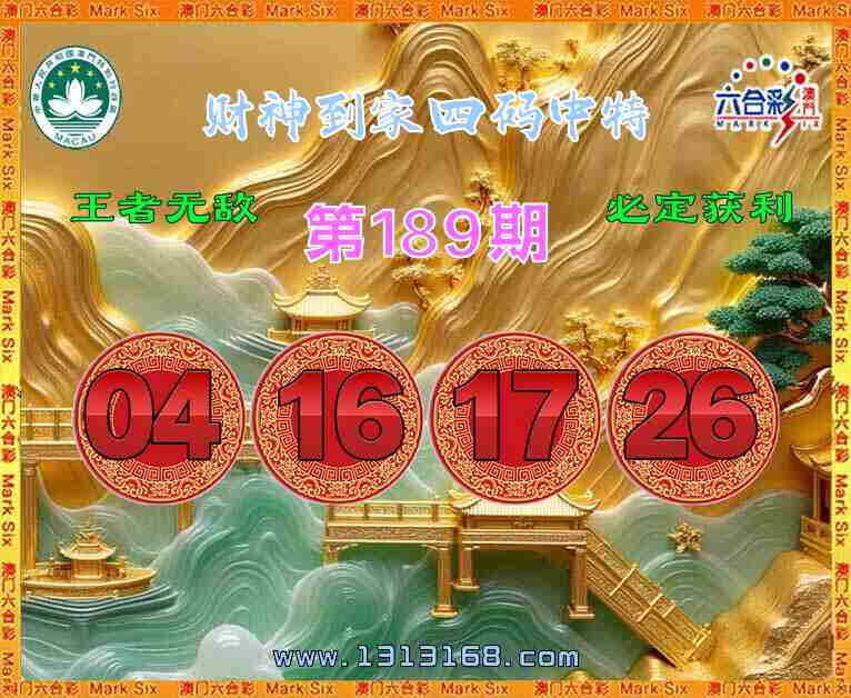 189期:【财神到家】 🚵‍♀️四码中特🚵‍♀️【04.16.17.26】开:17