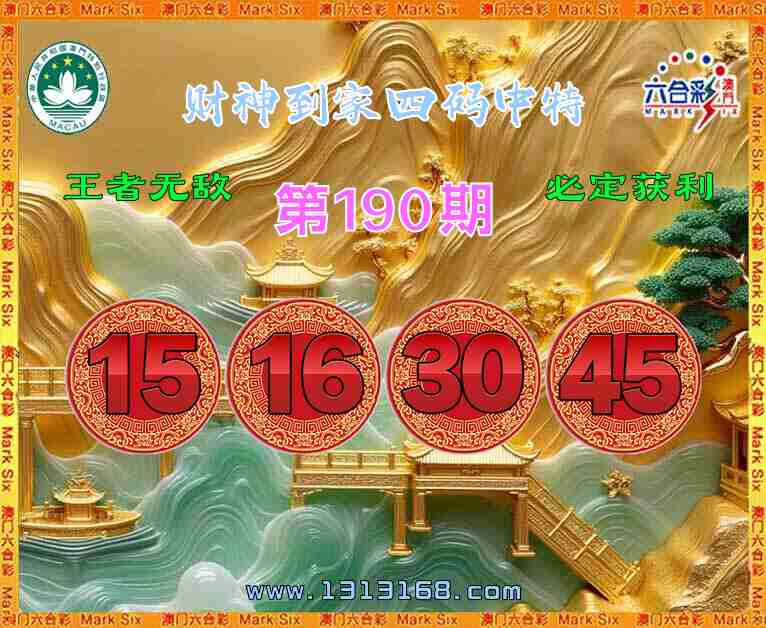 190期:【财神到家】 🚵‍♀️四码中特🚵‍♀️【15.16.30.45】开:00准