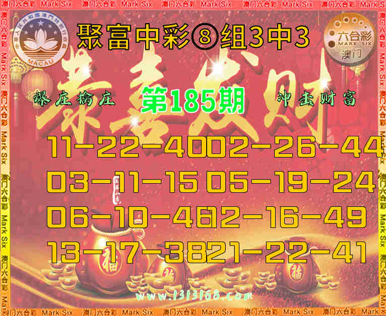 185期:『聚富中彩』 🏇⑧组3中3🏇