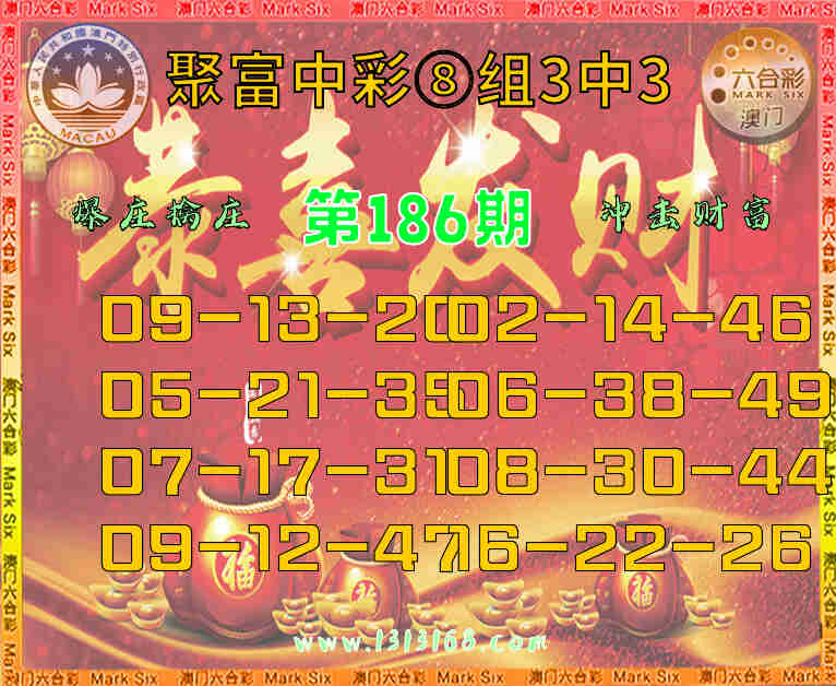 186期:『聚富中彩』 🏇⑧组3中3🏇