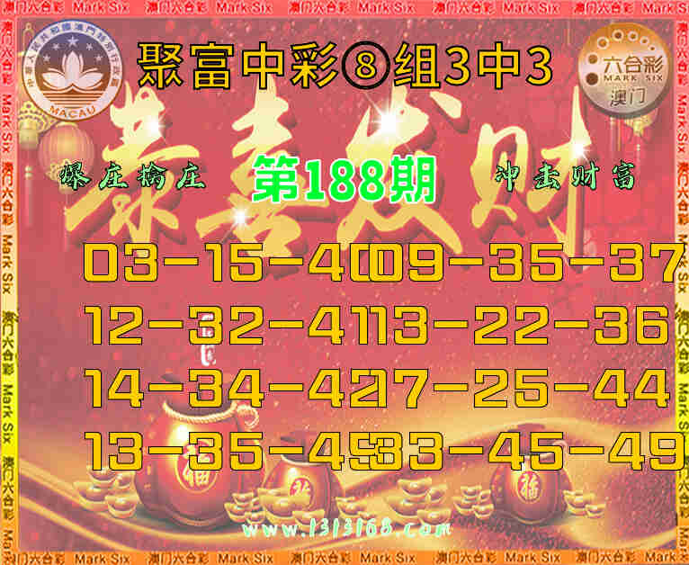 188期:『聚富中彩』 🏇⑧组3中3🏇