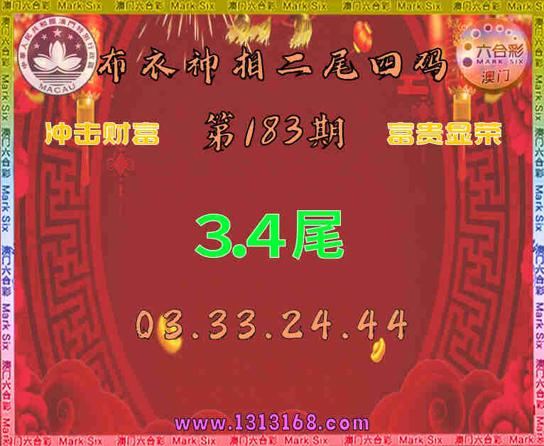183期:『布衣神相』 📙二尾四码📙【34尾主:03.33.24.44】开:33