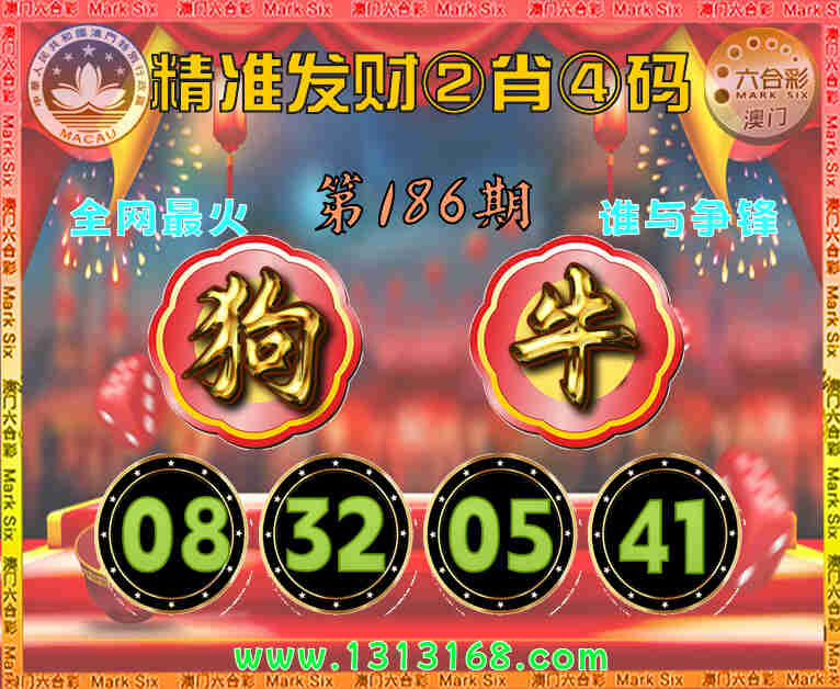 186期:【精准发财】 🎖️②肖④码🎖️【牛】【08.32.05.41】开:狗08
