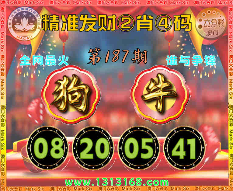 187期:【精准发财】 🎖️②肖④码🎖️【狗牛】【08.20.05.41】开:00准