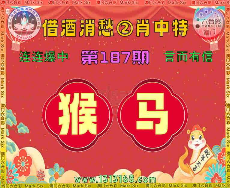 187期:〖借酒消愁〗 🏃‍♀️②肖中特🏃‍♀️【猴.马】开:00准
