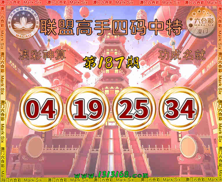 187期:《联盟高手》四码中特⚽【04.19.25.34】开:00准