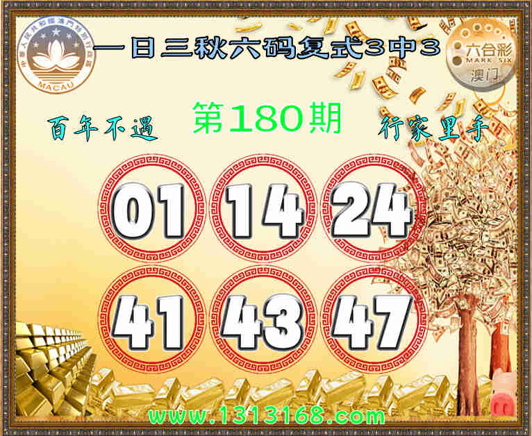 180期: 🧏‍♀️《一日三秋》 🧏‍♀️六码复式3中3🧏‍♀️