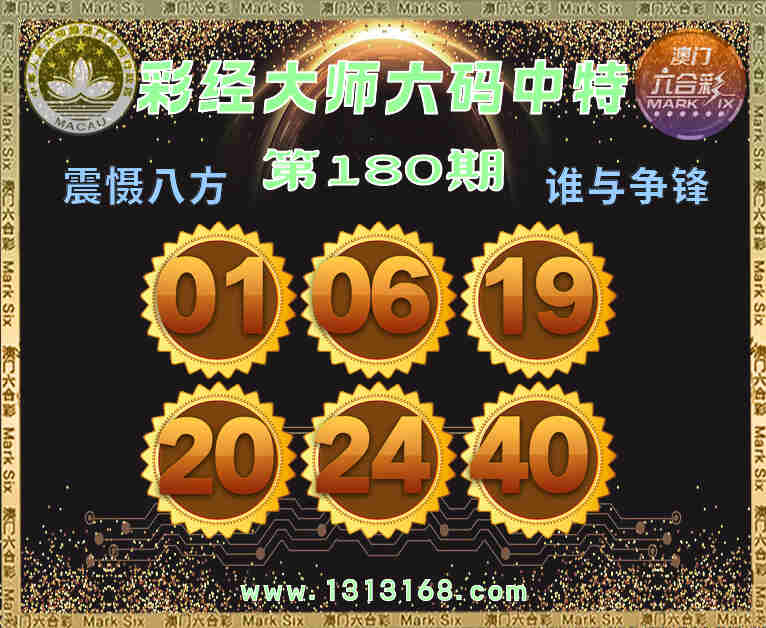 180期:【彩经大师】 ♣️六码中特♣️【01.06.19.20.24.40】开:00准