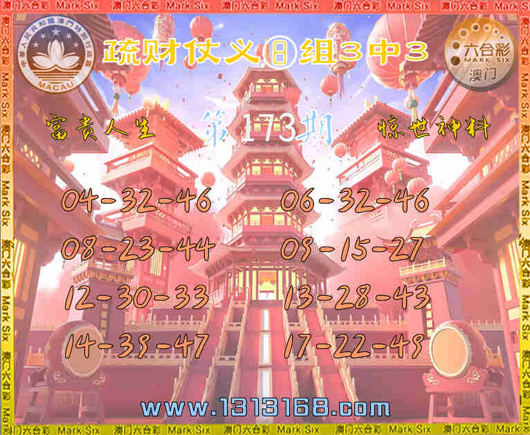 173期:【疏财仗义】 🀄⑧组3中3🀄