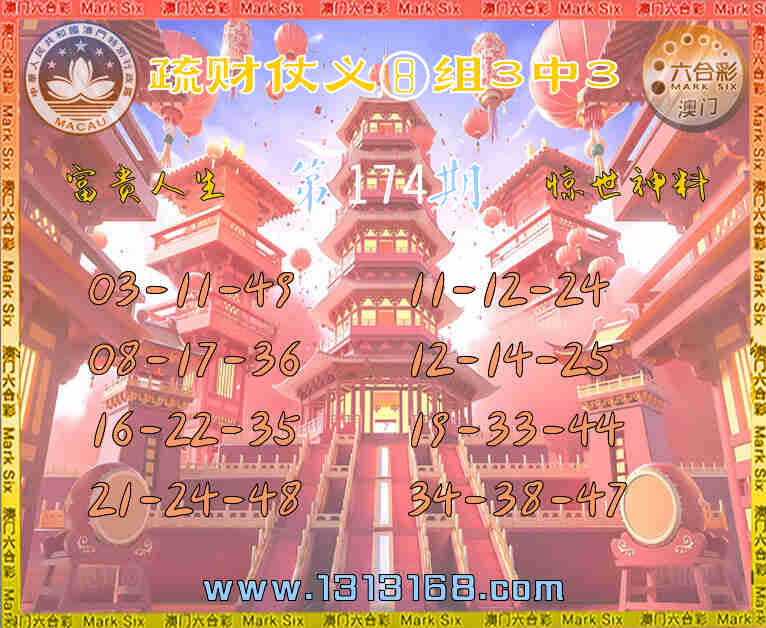 174期:【疏财仗义】 🀄⑧组3中3🀄