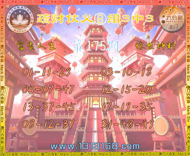 175期:【疏财仗义】 🀄⑧组3中3🀄