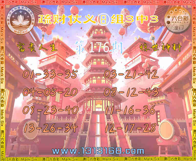 176期:【疏财仗义】 🀄⑧组3中3🀄