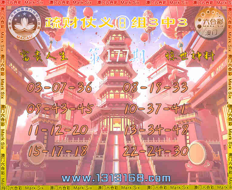177期:【疏财仗义】 🀄⑧组3中3🀄
