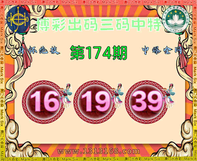 174期: ⛩️《博彩出码》 ⛩️三码中特⛩️【16.19.39】开:39